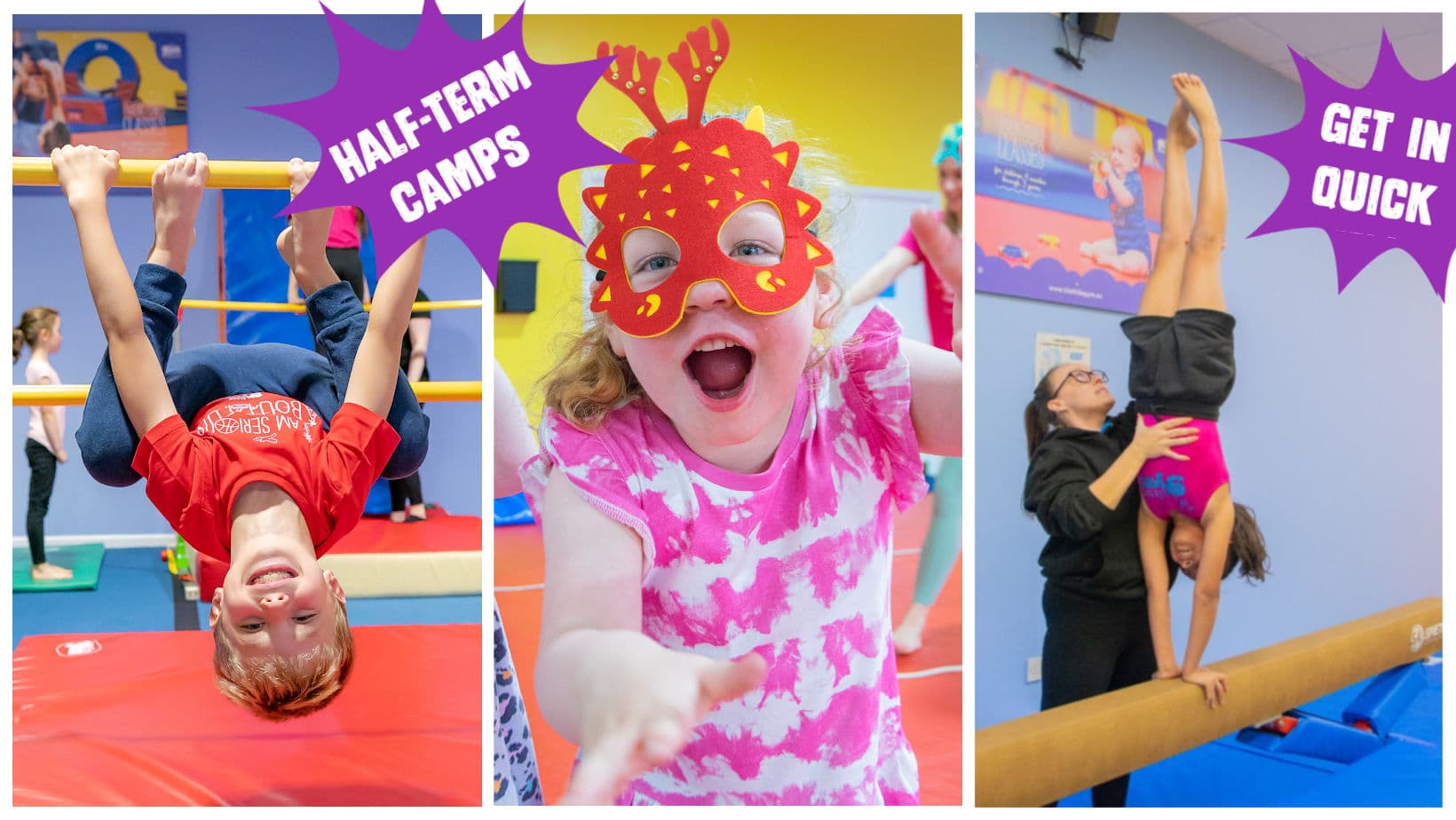 Our camps are Ofsted-registered and our instructors are DBS-checked, and paediatric first aid & safeguarding trained. We are also heavily trained in child development so that your child can get the most out of not just their fun gymnastics & adventurous movement in camps, but benefit from all-round development — physically, cognitively, socially & emotionally.